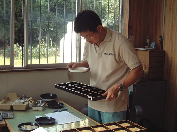 収穫したお米を、農産物検査員による検査と食味計での計測にかけ、その結果を翌年の栽培計画に役立てております。
