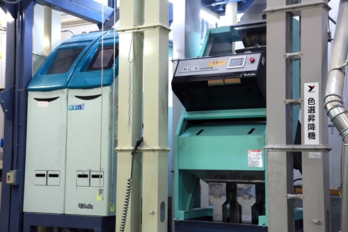 弊社精米ラインでは精米機の後に最新のCCDカメラによる異物選別機2台を設置し、二重化の効果によって高いレベルの商品の品質管理を行っています。